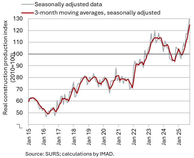 However, some other data suggest lower growth in construction activity. According to VAT data, the activity of construction companies in October was 18% higher than in the same month last year. The difference in activity growth compared with the data on the value of construction work put in place amounted to 18 p.p. Similarly, data on the value of industrial production in the manufacture of non-metallic mineral products, which is traditionally strongly linked to construction, do not indicate such high growth: in October, it was only 1% higher than in October last year.