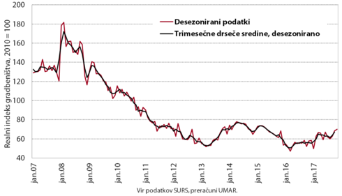 Proti koncu lanskega leta se je aktivnost v gradbeništvu povišala. Krepitev gradnje stavb je predvsem odraz okrepljenega optimizma zasebnega sektorja, višja vrednost del v inženirskih objektih pa povišanih investicijskih izdatkov države.