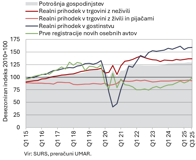 Izbrani kazalniki potrošnje gospodinjstev, 3. četrtletje 2025